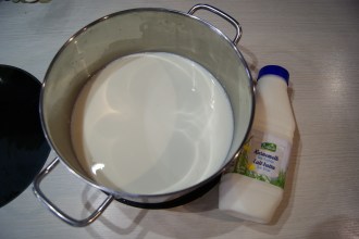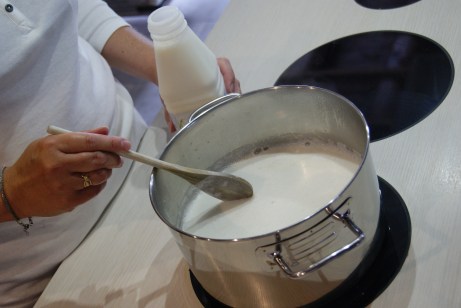 - Lorsque le lait bout, ajouter le lait battu et mélanger durant environ 15 minutes afin que celui-ci caille